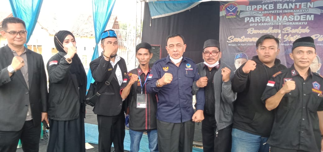 LOSARANG, indramayunews.id – DPC Badan Pembinaan Potensi Keluarga Besar (BPPKB) Banten Kabupaten Indramayu dan DPD NasDem Kabupaten Indramayu menggelar santunan untuk anak yatim yang dilaksanakan di Desa Jangga Kecamatan Losarang Kabupaten Indramayu, Minggu (24/4).