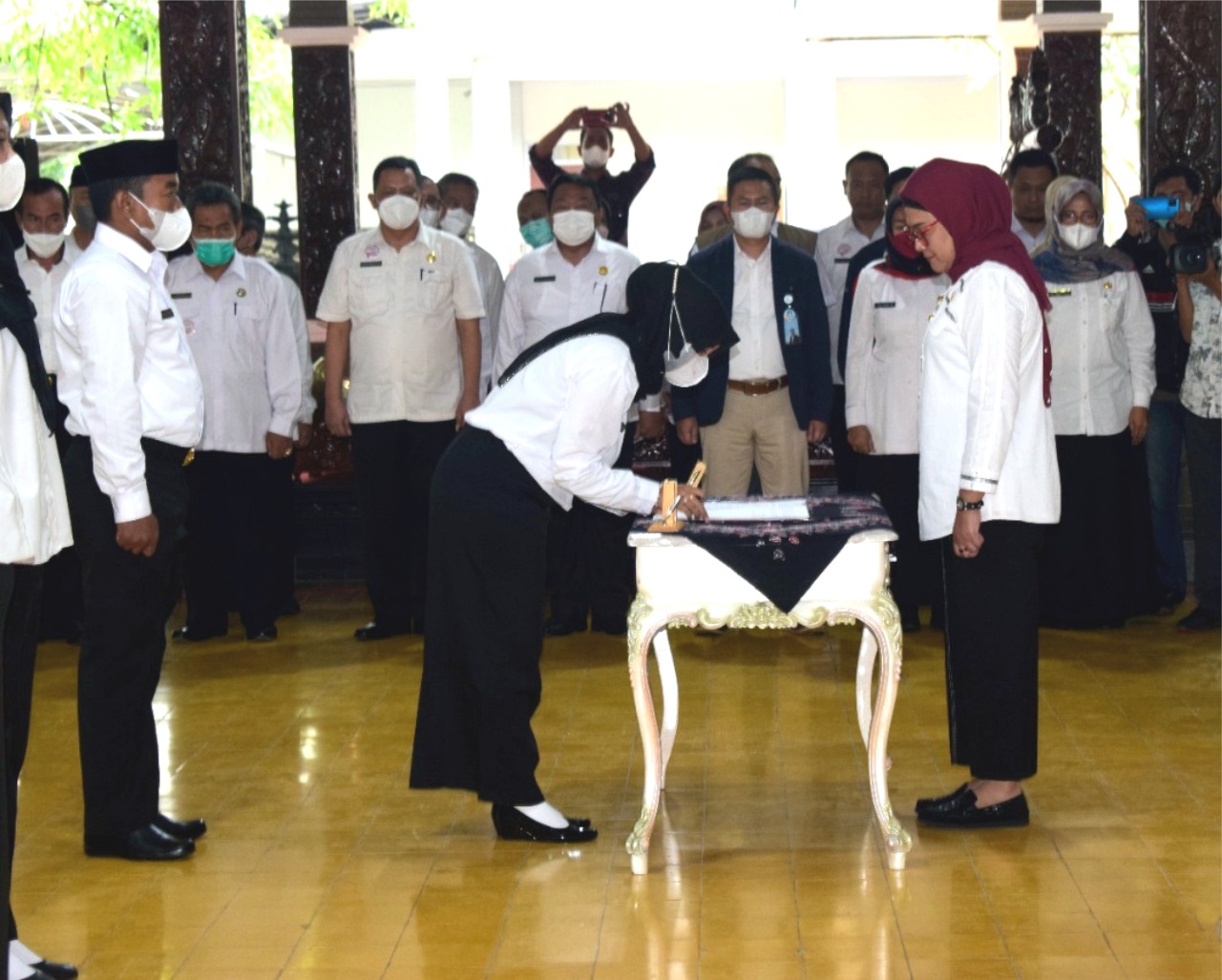 Penyerahan SK Pengangkatan oleh Bupati Indramayu Nina Agustina itu meliputi 392 CPNS dan 211 PPPK dihadiri oleh Asisten Daerah dan para kepala Perangkat Daerah di lingkungan Pemerintah Kabupaten Indramayu.