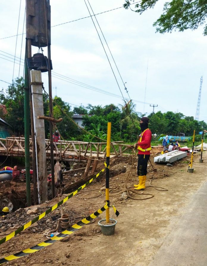 INDRAMAYU, indramayunews.id – Perkembangaan pembangunan proyek diLSS 03/PT. Nindya Karya di Kabupaten Indramayu. Para pekerja sedang mengerjakan pembuatan saluran di wilayah Kecamatan Lelea Kabupaten Indramayu.