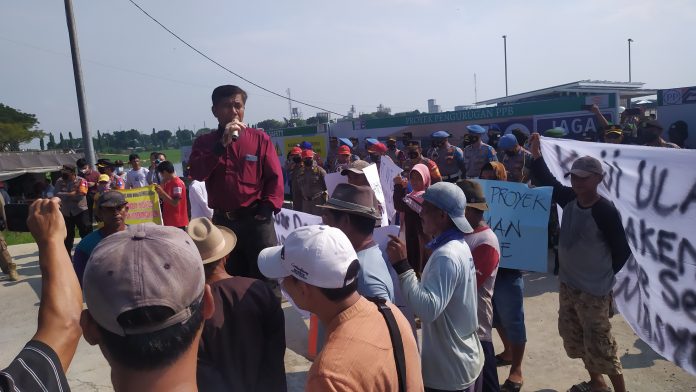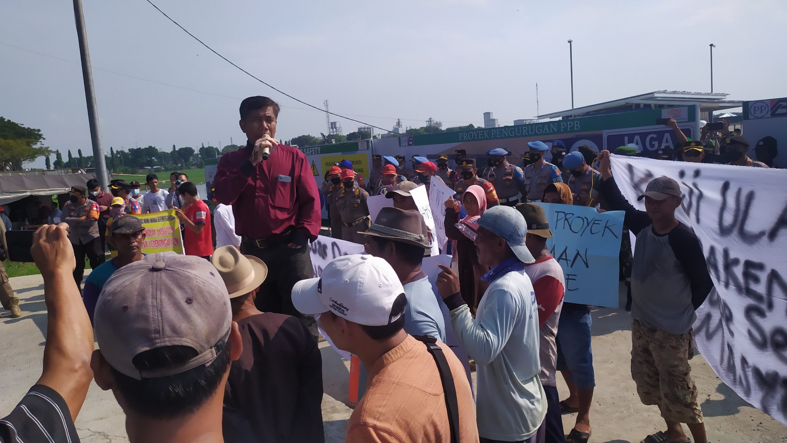 Dalam aksinya, warga menutup aktifitas proyek dan membentangkan spanduk serta poster tuntutan, massa mengeluhkan adanya aktifitas proyek yang berdampak pada infrastruktur pertanian yang mengakibatkan sekitar 15 hektar areal pesawahan dalam 2 musim gagal tanam karena banjir. Saluran irigasi utama pembuangan tertutup karena adanya proyek PT. Polytama Propindo.