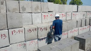 Berdasarkan pantauan di lapangan, para pekerja sedang fokus melakukan pengerjaan pengecoran beton kubus dan perakitan cetakan kubus, pihak BBWS Cimancis menambah volume armada kendaraan molen cor agar hasil produksi kubus lebih meningkat.