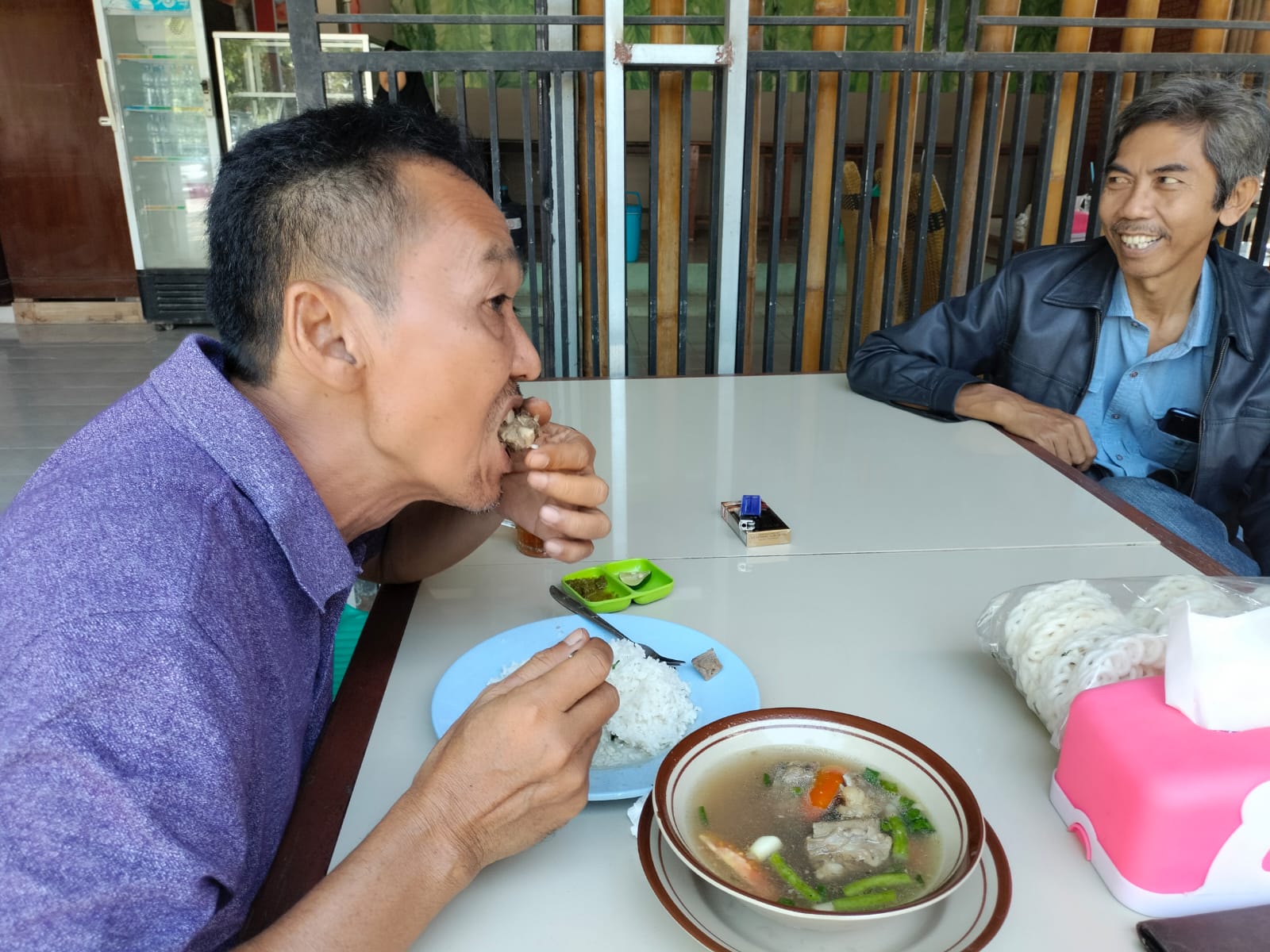 Menu makanan disini, cukup pas. Harganya lebih terjangkau bagi semua kalangan,”jelas Arris Solihin, pengurus Partai Demokrat yang juga mantan anggota DPRD Kabupaten Indramayu ini yang kebetulan sedang makan di Rumah Makan Saung Bambu dan hampir setiap makan siang. (IN-014)