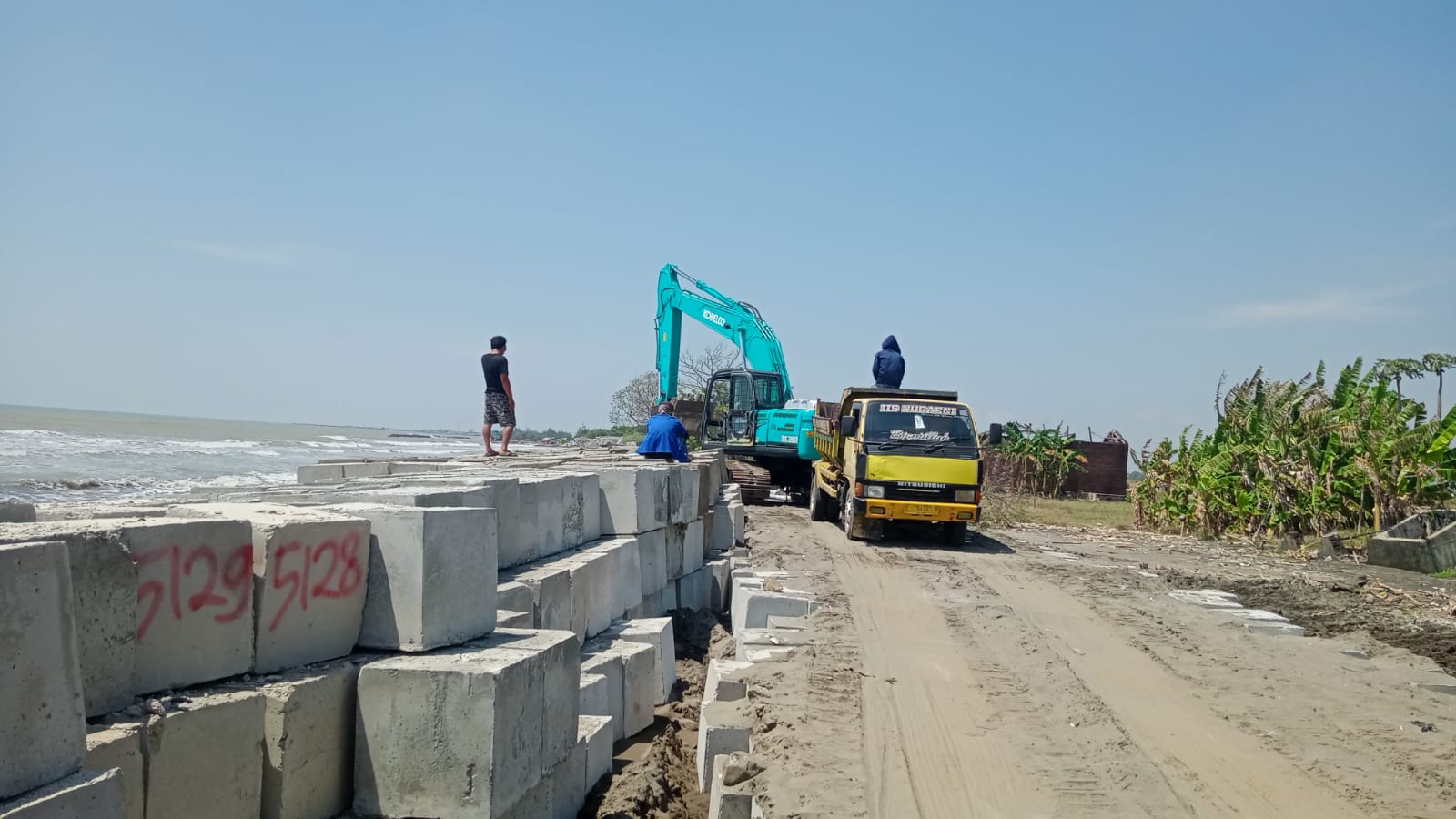 Selain fokus pada pencetakan kubus beton, para pekerja juga melakukan suplai kubus beton yang sudah jadi ke sejumlah titik ke loading stok di sekitar pantai, dalam rangka pengerjaan groin sebelum dilakukan pemasangan breakwater.