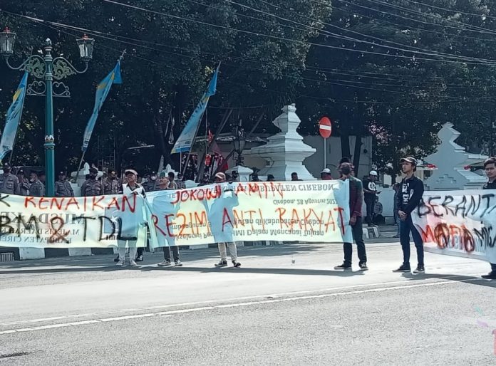 CIREBON, Indramayunews.id-Mahasiswa yang tergabung dalam Himpunan Mahasiswa Islam (HMI) Cirebon melakukan aksi unjuk rasa terkait adanya rencana kenaikan harga BBM. Para mahasiswa menggelar orasi di depan Balaikota dan Gedung DPRD Kota Cirebon, Senin, 29, Agustus 2022.