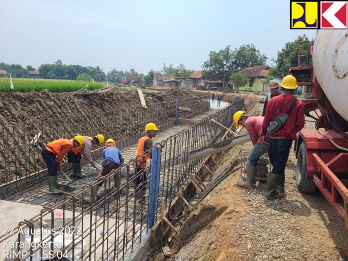 INDRAMAYU_Penanggungjawab PT. Hutama Karya, Cecep menjelaskan, kegiatan proyek di zona 2 (satu) wilayah Kabupaten Indramayu. Para pekerja tengah melakukan pemasangan lining, dan Normalisasi Saluran Irigasi Rentang Cipelang Desa Karanggetas Kecamatan Bangadua.