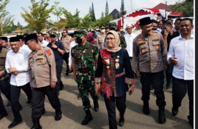 Menteri Koperasi dan UMKM, Teten Masduki, didampingi Bupati Nina Agustina, membuka Bazar UMKM, sunatan massal dan kirab budaya atau kirav merah putih.