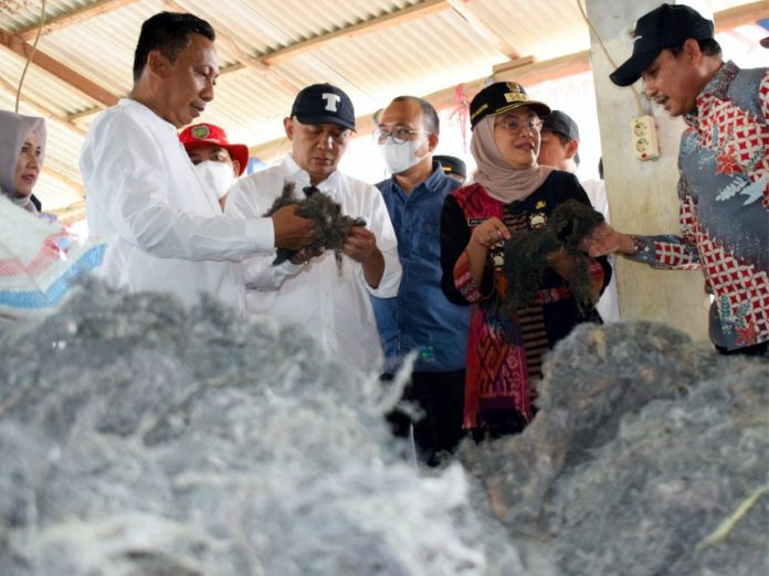 Menkop UKM Teten langsung melihat produksi rumput laut milik nelayan Desa Cangkring Kecamatan Cantigi Kabupaten Indramayu.