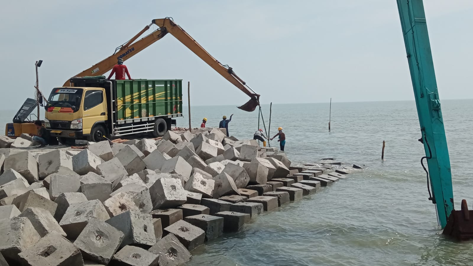 INDRAMAYU, indramayunews.id – Kordinator pelaksana PT. Aura Sinar Baru, kSO Andi menjelaskan, saat ini proyek pembangunan breakwater di Desa/Kecamatan Juntinyuat Kabupaten Indramayu masih berjalan dengan baik.