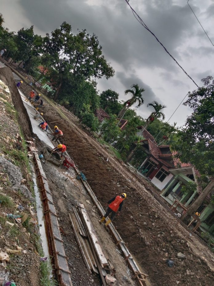 Kegiatan LSS 04 PT Bumi Karsa di Desa Sukamulya Kec Tukdana sedang dilakukan aktifitas pemasangan preecest dinding saluran sekunde hulu Sukamulya.