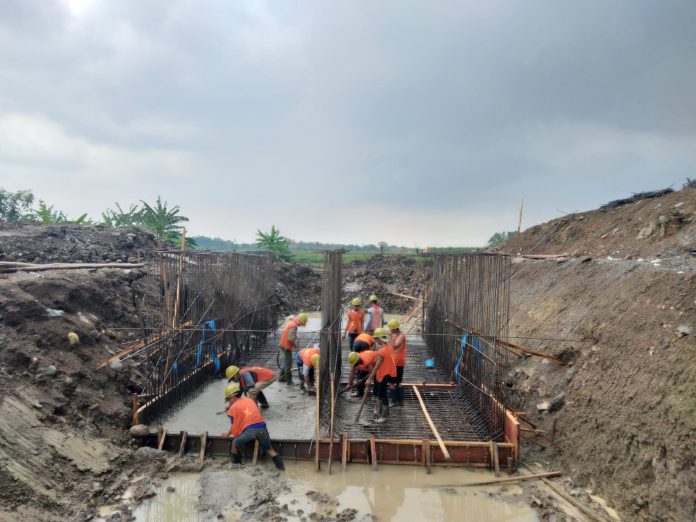 INDRAMAYU, indramayunews.id – Perkembangan situasi proyek modernisasi irigasi rentang atau rentang irrigation modernization project (RIMP) di LS 06 PT. Jaya Konstruksi. Para pekerja tengah melaksanakan pekerjaan proyek saluran irigasi di Kabupaten Indramayu.