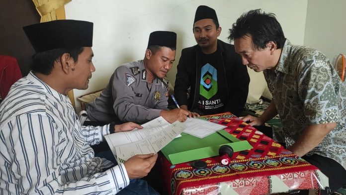 Tampak menyaksikan pria yang sekarang berdomisili di Blok Kamplong desa setempat adalah Panit Dua Lantas Polsek Kandanghaur Amrullah, Ketua LPBI NU Ishak dan tokoh masyarakat di di kediaman ketua PCNU desa setempat, kemarin.