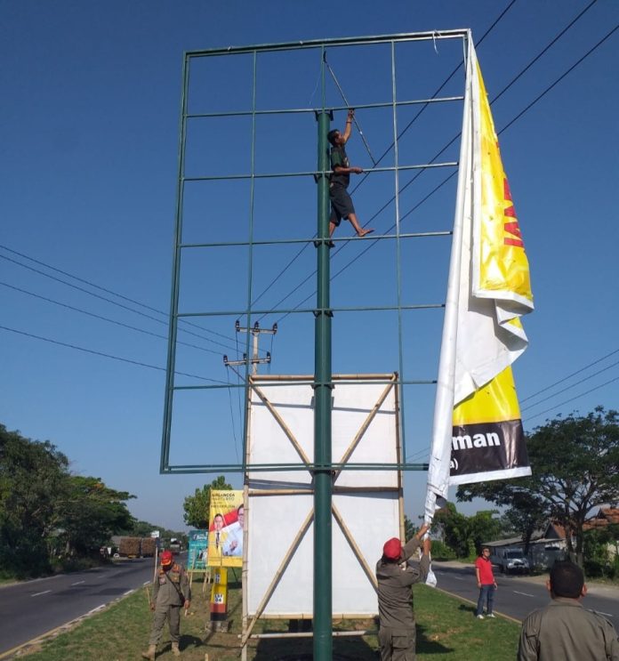 INDRAMAYU, indramayunews.id – Pemerintah Kabupaten Indramayu terus melakukan penertiban reklame tak berizin. Langkah itu diambil dengan alasan selain mengganggu estetika dan keselamatan, penertiban reklame juga untuk meningkatkan pendapatan asli daerah (PAD).