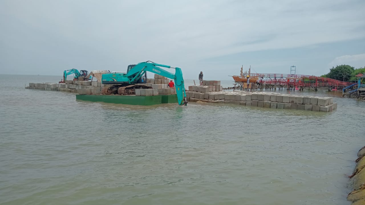 PT. Aura Sinar Baru Kerjakan Pemasangan Kubus di Sejumlah Groin Pantai Glayem