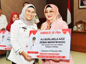 INDRAMAYU, indramayunews.id – Sejumlah pengusaha di Kabupaten Indramayu secara simbolis menerima langsung Surat Keputusan Persetujuan Bangunan Gedung (PBG) yang diberikan Bupati Indramayu Nina Agustina, di Ruang Ki Tinggil Indramayu, Rabu (07/12/2022).