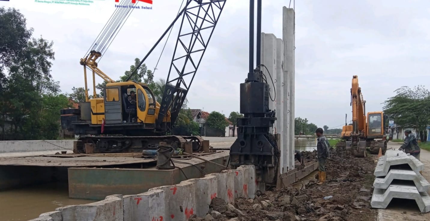 INDRAMAYU,indramayunews.id-Perkembangan Proyek Modernisasi LMS_02 PT. Hutama Karya di Kabupaten Indramayu. Para pekerja tengah melakukan pekerjaan normalisasi saluran irigasi rentang dan pekerjaan proyek lainnya.