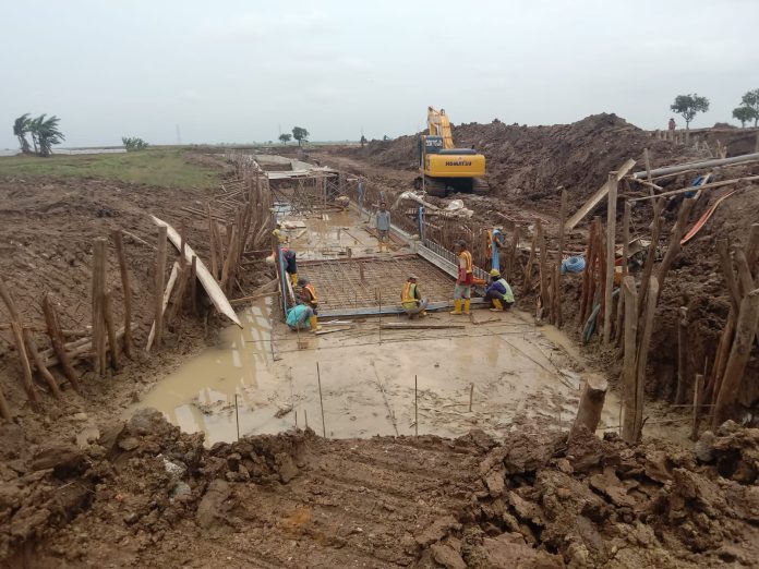 INDRAMAYU, indramayunews.id – Perkembangaan pembangunan proyek diLSS 03/PT. Nindya Karya di Kabupaten Indramayu. Para pekerja sedang mengerjakan pengecoran dan pemasangan diding Kecamatan Lelea Indramayu.