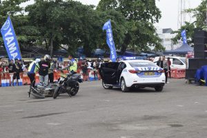 Penangganan kejahatan jambret HP kepada pengendara motor yang diperagakan oleh Tim Permata motor dan anggota satuan Lalu lintas Polres Indramayu. Lalu dihibur dengan penampilan seni Barongsai dan hiburan musik serta pembagian doorprize. (dra)