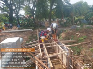 Para pekerja tengah membuat rancangan besi cor, mobIlisasi beton ke lokasi kerja saluran sekunder (SS) Tlagasari, SS Waru dan SS Pengulu.