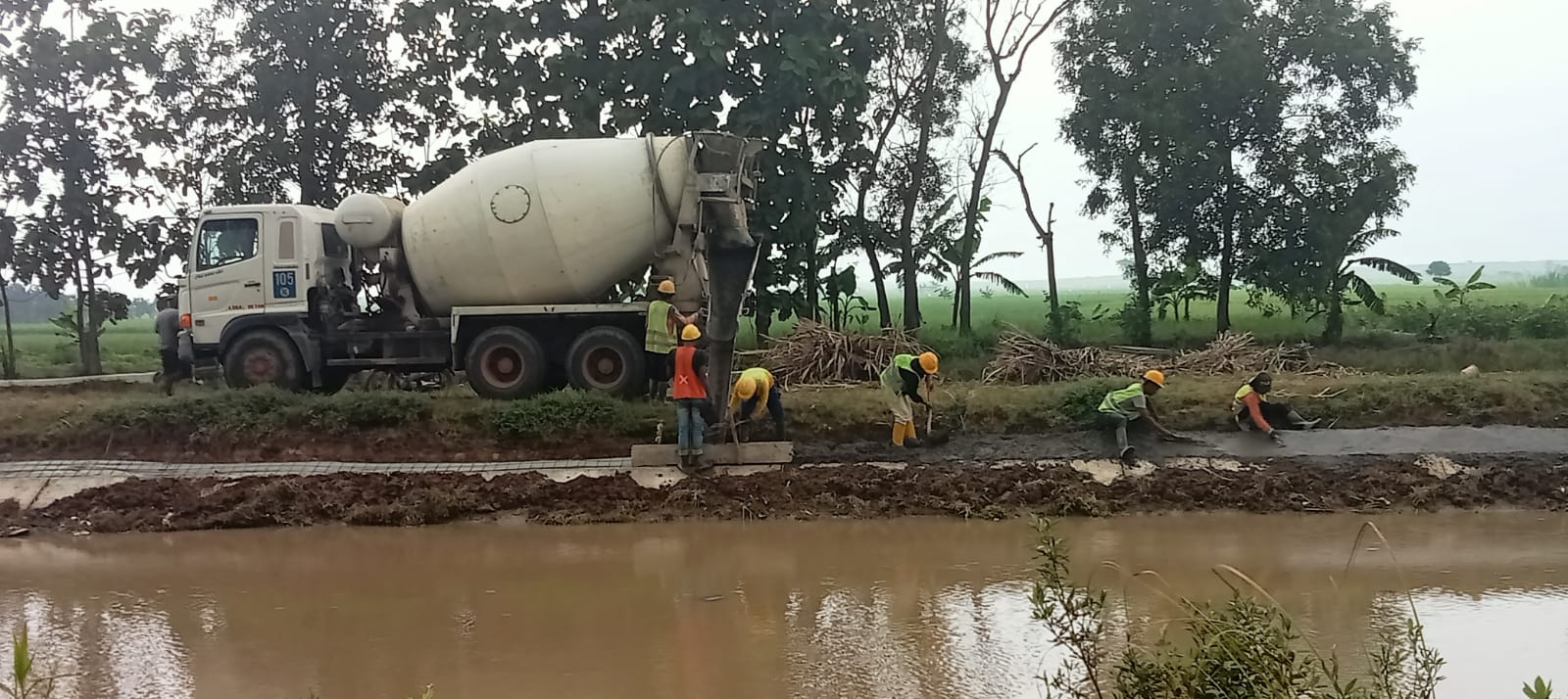 Pekerjaan di Desa Cikedung kec Cikedung adalah pembuangan tanah disposal, perapian jalan, pembuatan pintu air. Bt 14. Pekerjaan Desa Karang Asem yaitu perangkaian besi diding, perapian jalan, perakitan besi dinding pintu air bbt 15.