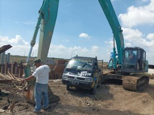 Kegiatan proyek di salural pembuang di Desa Cemara Kulon dan Santing Kecamatan Losarangg Indramayu. Yakn, lanjut dia, bongkar material seetpill untuk pembangunan jembatan.
