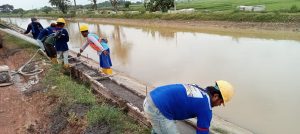 Pekerjaan di Desa Cikedung kec Cikedung adalah pembuangan tanah disposal, perapian jalan, pembuatan pintu air. Bt 14. Pekerjaan Desa Karang Asem yaitu perangkaian besi diding, perapian jalan, perakitan besi dinding pintu air bbt 15.