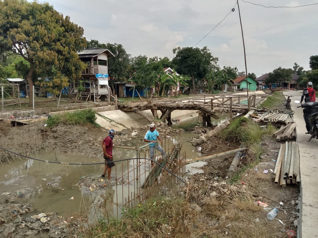 Lanjut pengerjaan di saluran sekunder Tlagasari dengan panjang saluran 5401.43 m yaitu meliputi Desa Ujung Jaya Kec Widasari, sloofing lining BTS 3 R/L serta galian bottom lining BTS 2