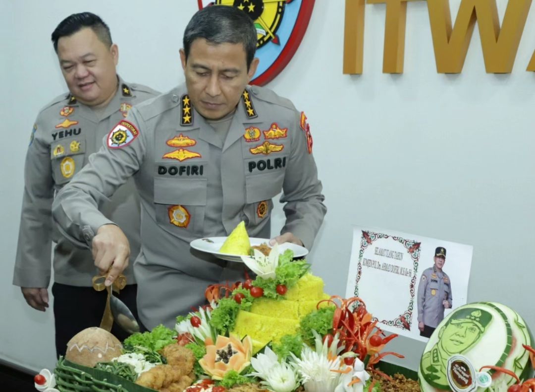 Brigjen. Pol. Yehu Wangsajaya membagikan momen ulang tahun pimpinan Inspektur Pengawasan Umum Polri (Irwasum) Komjen. Pol. Ahmad Dofiri, menjadi suatu kebahagiaan dan kehormatan bagi dirinya mendapatkan potongan tumpeng pertama dari sang pimpinan.