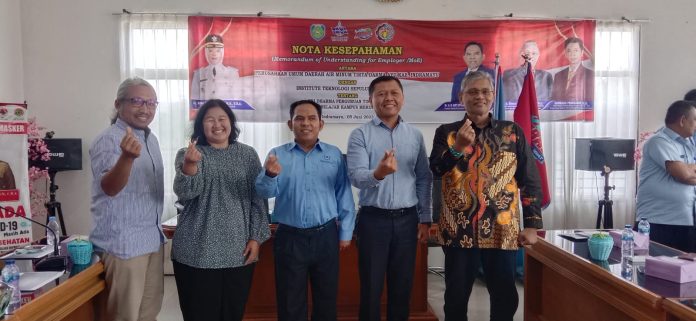 Penandatanganan nota kesepahaman oleh Direktur Perumda Air Minum Tirta Darma Ayu Dr Dr H Ady Setiawan SH MH MM MT, dan Kepala Insitut Teknologi Sepuluh Nopember Surabaya Dr Ir Arman Hakim Nasution MEng.