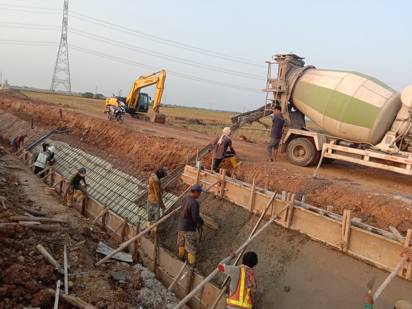 Persiapan pengecoran bendung Kali Cihapit dan pemasangan lining di blok Cihapit Drda Jatisura Kec. Cikedung. (rls),