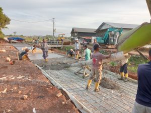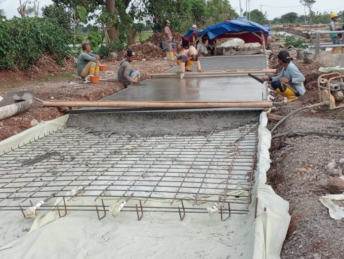 Pengecoran lanjutan bendung Kali Talang di Desa Tugu Indramayu. Pekerja juga melaksanakan pemasangan begisting dan pengecoran lanjutan tanggul kalen beras Desa Tunggul Payung Kec. Lelea.