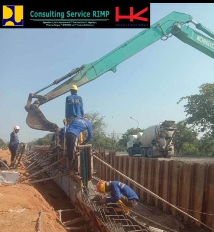Selanjutnya kegiatan proyek di zona 4 (empat) meliputi pemasangan begisting retaining wall, Normalisasi Saluran Irigasi Rentang Cipelang Desa Legok Kecamatan Lohbener.