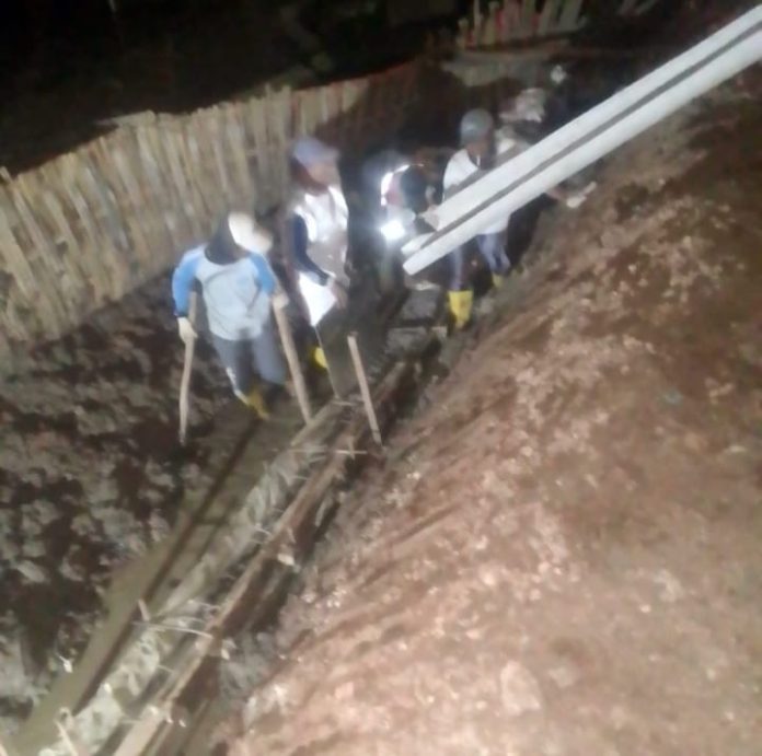 LELEA, indramayunews.id -Perkembangaan pembangunan proyek di LSS 03/PT. Nindya Karya di Kabupaten Indramayu. Para pekerja sedang mengerjakan pemasangan lining di Kali Talang Desa Nunuk.