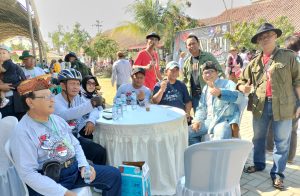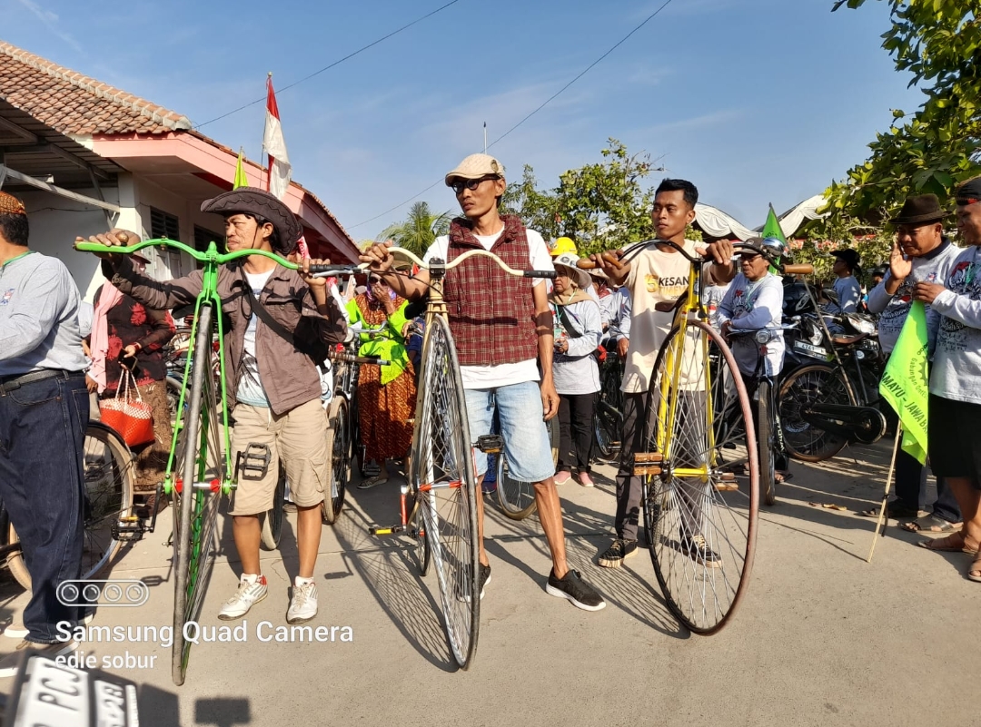 Para peserta sepeda onthel kuno dilepas oleh Wakil Ketua KOSTI Jabar Santo didampingi Ketua Goes Junti Saprudin dan Dewan Penasehat Drs H Udi Suwarsudi. Mereka (peserta, red) dihibur oleh artis lokal Indramayu di bawah group Orkes Kuntum Melati.