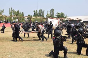 Dikatakan Kapolres Indramayu AKBP DR M Fahri Siregar, simulasi Sispamkota merupakan latihan gabungan antara TNI, POLRI dan Korps Brimob dalam rangka menghadapi Operasi Mantap Brata Lodaya 2023 -2024 yang akan dimulai pada 19 Oktober 2023. (tim)