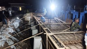 Para pekerja tengah melakukan pembuatan rancangan besi cor, mobilisasi beton dengan TM ke lokasi kerja Saluran Sekunder (SD)Â Waru, SS Langut dan SSÂ Pengulu.