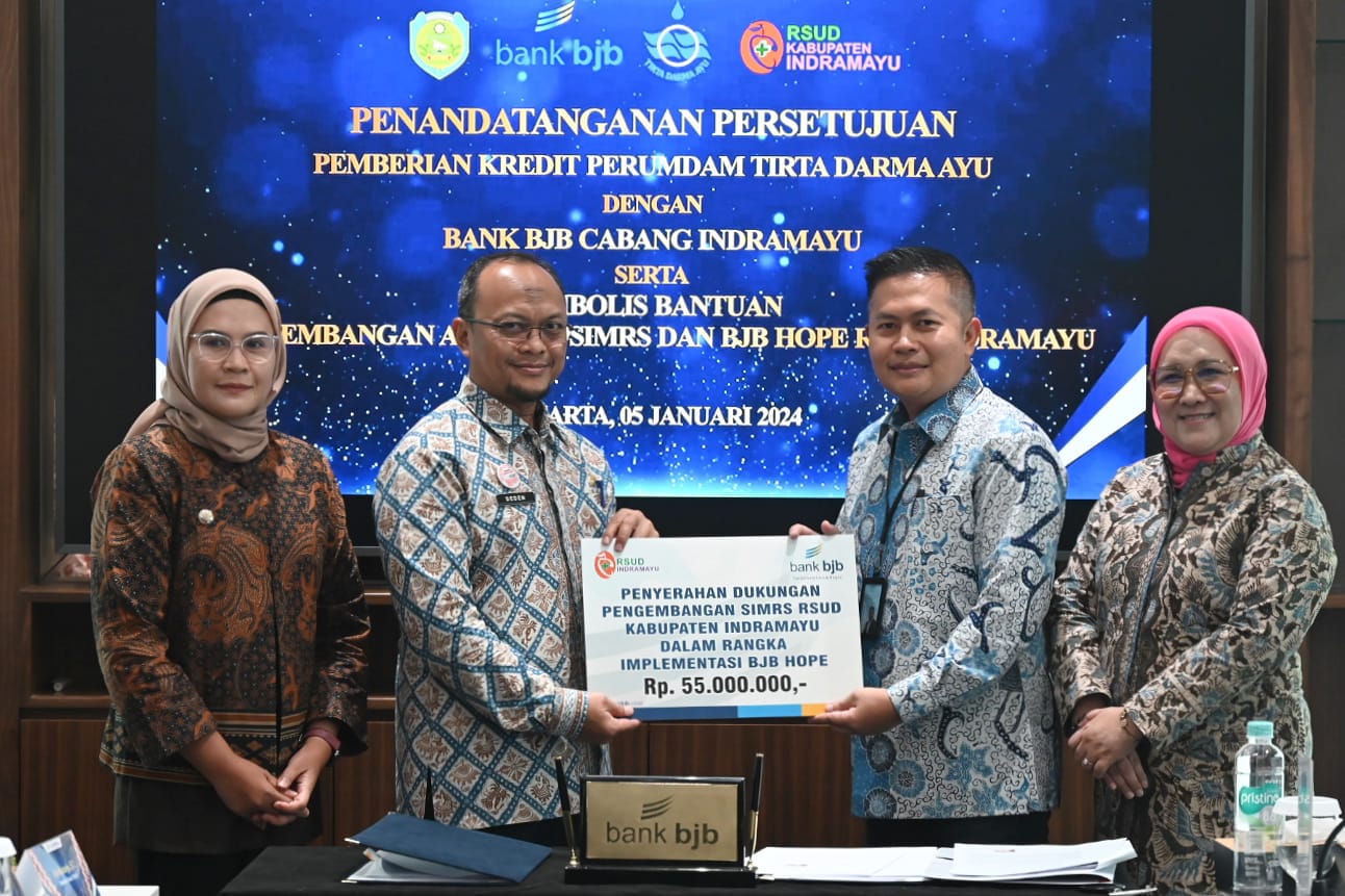 Sedangkan dari Perumdam langsung oleh Direktur Utama Perumdam Tirta Darma Ayu Indramayu H Ady Setiawan. Kemudian dilanjutkan dengan prosesi simbolis bantuan pengembangan SIMRS bjb Hope RSUD Indramayu oleh Pemimpin bank bjb Kantor Cabang Indramayu Asep Wahyu Ismail kepada Direktur RSUD Indramayu Deden Boni Koswara.
