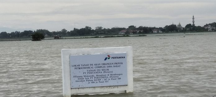 “Diperkirakan ada ribuan hektare areal persawahan petani terendam di depan areal kilang Pertamina. Juga pesis di depan lokasi pabrik Polytama Propindo,”jelas Samir, petani asal Kecamatan Juntinyuat kepada wartawan, Jumat, 15 Maret 2024.