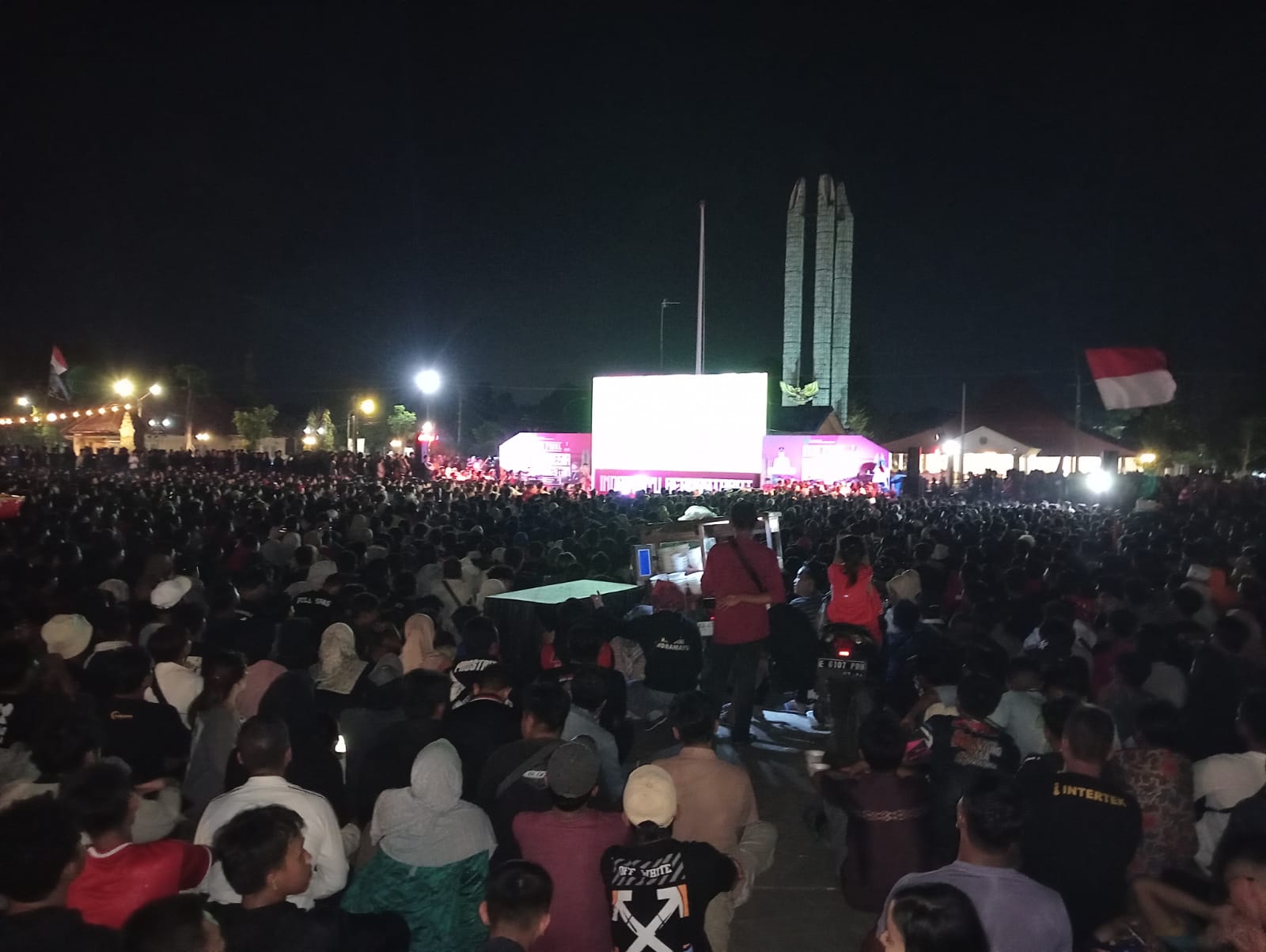 INDRAMAYU, indramayunews.id – Keseruan nonton bareng demi mendukung Timnas Indonesia dalam pertandingan krusial melawan Uzbekistan semakin terasa di area Pendopo Puspawangi Indramayu. Antusiasme masyarakat Indonesia dari berbagai penjuru tampak begitu membara, dengan dukungan penuh untuk skuad Garuda.