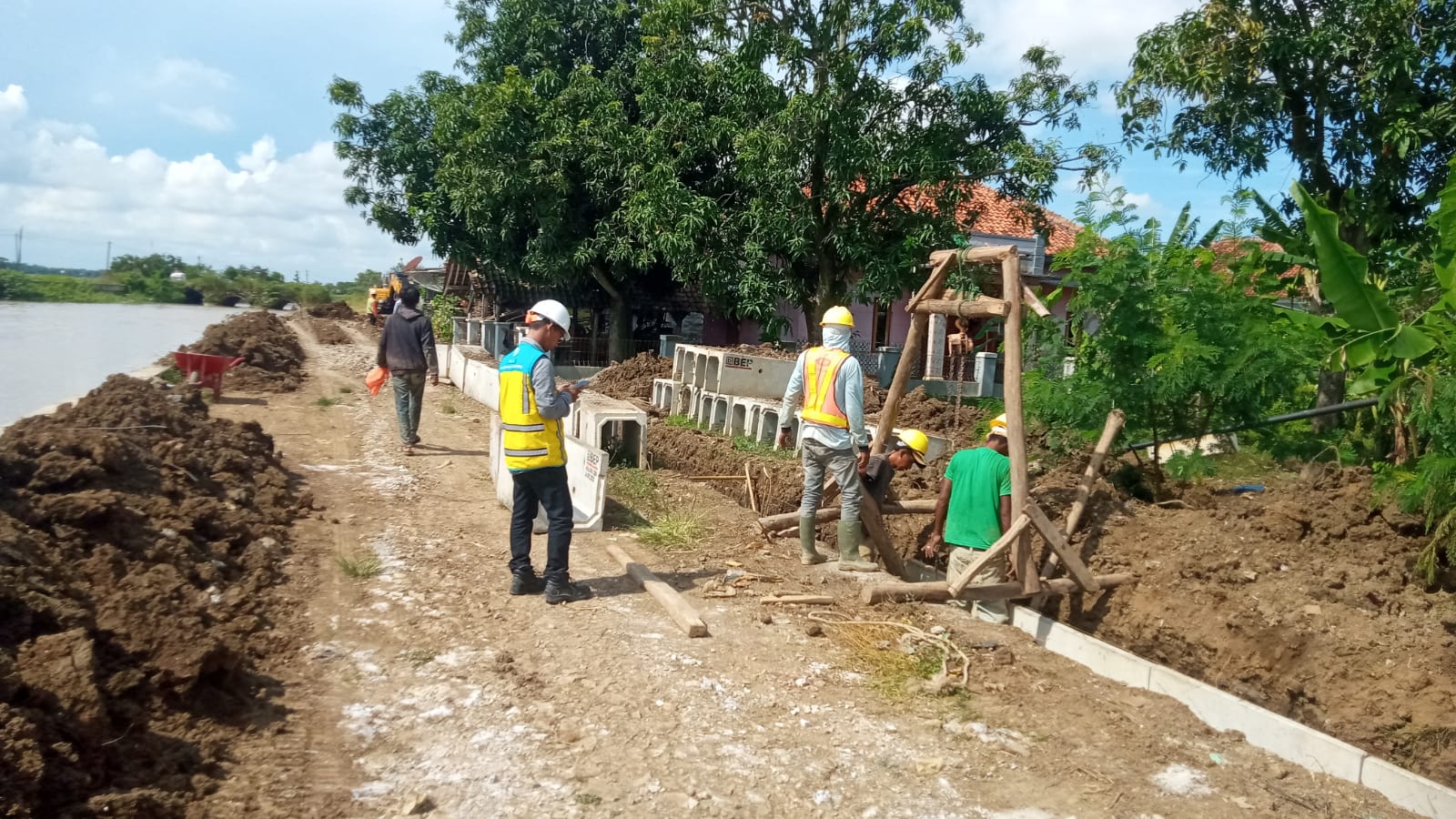 INDRAMAYU, indramayunews.id -Konsultan Proyek PT. Adhi Karya, Priangga menjelaskan, saa ini pihaknya terus melakukan monitoring Perkembangan pekerjaan pembangunan irigasi proyek Rimp LMS 01 PT. Adhi Karya.