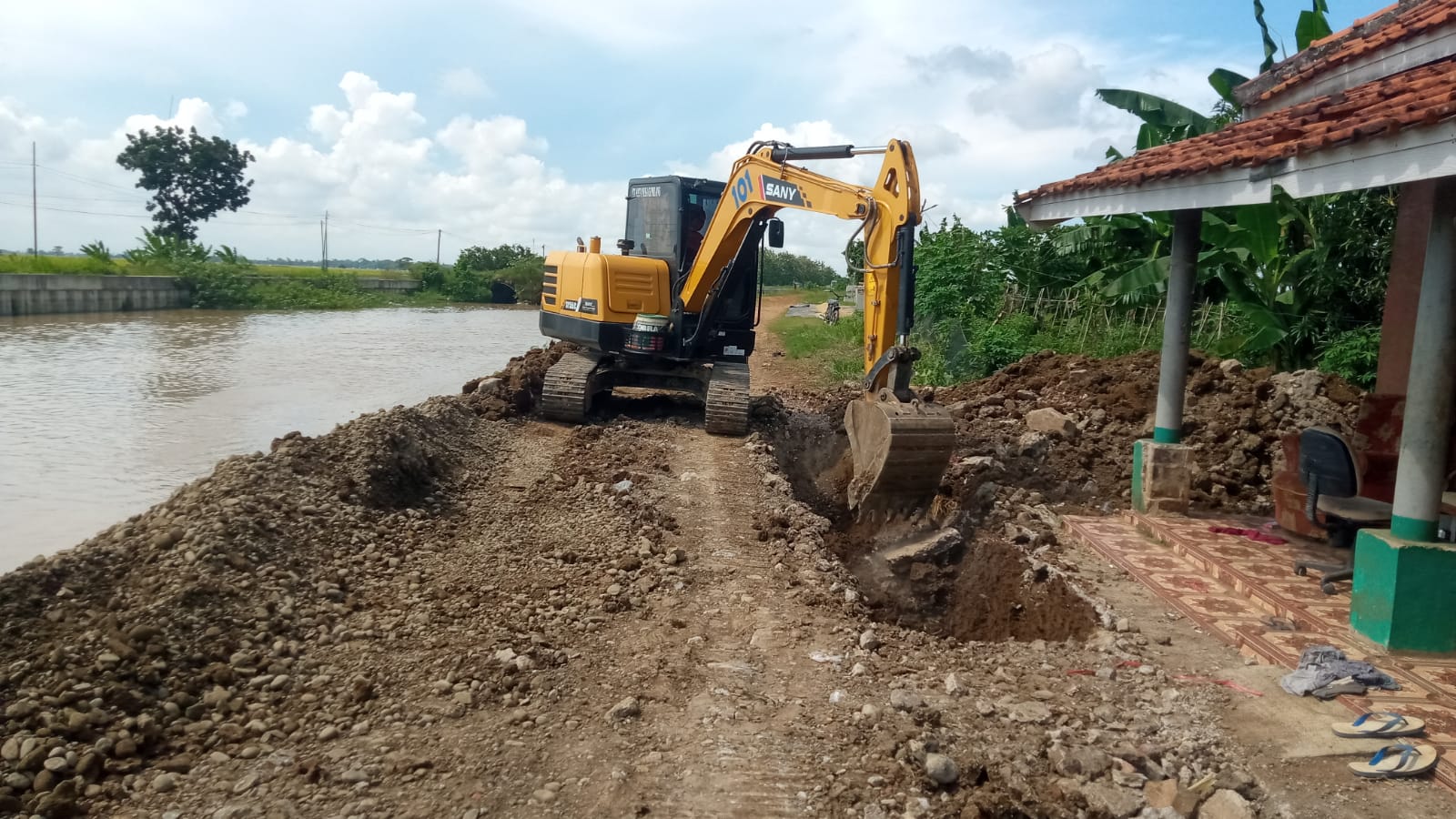 Kemudian pengerjaan pembangunan irigasi di Drsa Panongan Kec. Jatitujuh yaitu sedang dilakukan pengecoran di brain house.