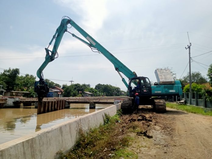 INDRAMAYU, indramayunews.id _Perkembangan Proyek Modernisasi LMS_02 PT. Hutama Karya di Kabupaten Indramayu. Para pekerja tengah melakukan pekerjaan normalisasi saluran irigasi Rentang.