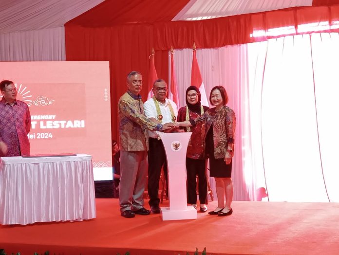 INDRAMAYU, indramayunews.id – Wakil Menteri Ketenagakerjaan RI, Ir. H. Afriansyah Noor, ST., M.Si., IPD didampingi Bupati Hj Nina Agustina dan CEO PT. Sun Bright Lestari Mr. Mark Lin, meresmikan pembangunan Pabrik Sepatu PT. Sun Bright Lestari di Jalan Raya Cirebon-Indramayu. Tepatnya di Desa Dukuhjati, Kecamatan Krangkeng Kabupaten Indramayu pada Kamis, 2 Mei 2024.