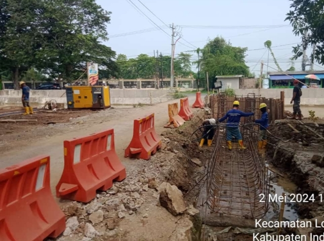 Instal slab atas colom pintu air, Normalisasi Saluran Irigasi Rentang Cipelang Desa Lohbener. Lalu persiapan pengecoran base kongrite, Normalisasi Saluran Irigasi Rentang Cipelang Desa Bangkaloa.