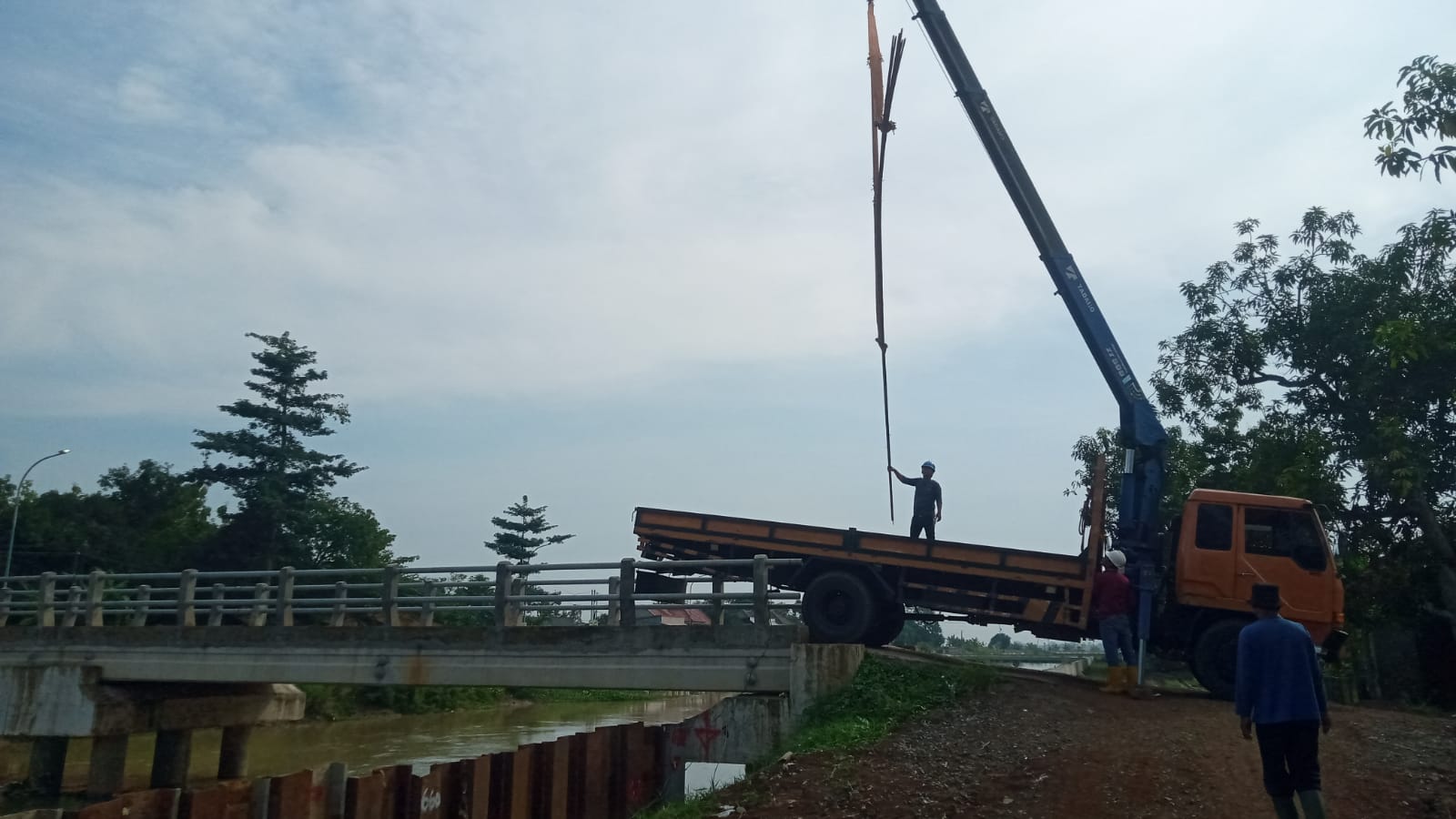 Kemudian Instal besi lantai parafet, Normalisasi Saluran Irigasi Rentang Cipelang Desa Bangkaloa. Penyedotan air, Normalisasi Saluran Irigasi Rentang Cipelang Desa Ujungpendok. (tim)
