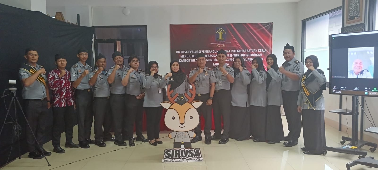INDRAMAYU, indramayunews.id _Tim Rupbasan Indramayu yang dipimpin oleh Kepala Satuan Kerja (KA. Satker) Nanang Badruzzaman mengikuti desk evaluasi pembangunan Zona Integritas menuju wilayah bebas korupsi (WBK) di Kantor Wilayah Kementerian Hukum dan Ham Jawa Barat oleh Tim Penilai Internal (TPI) inspektorat Jenderal Kemenkumham Senin ,(13/Mei/2024)