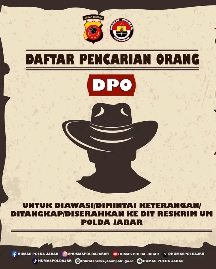 Berikut adalah daftar pencarian orang (DPO) Polda Jabar:
