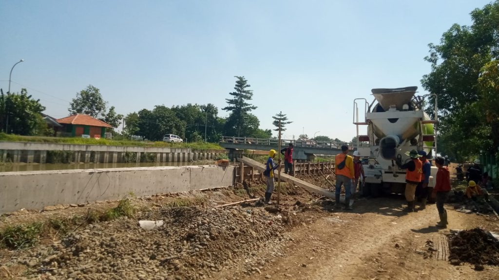 Kemudian perkembangan pengerjaan pembangunan irigasi di Sindupraja Kecamatan Jatitujuh sedang melakukan aktifitas brain house.