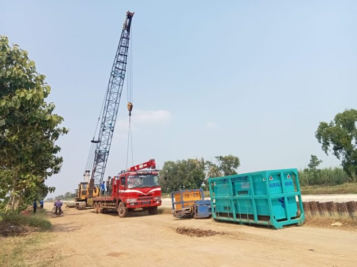 Pekerjaan yang sekarang sedang berjalan adalah pengakutan besi rangkaian ke lokasi proyek, perakitan besi, perbaikan mesin-mesin yang rusak, serta pembersihan kantor.