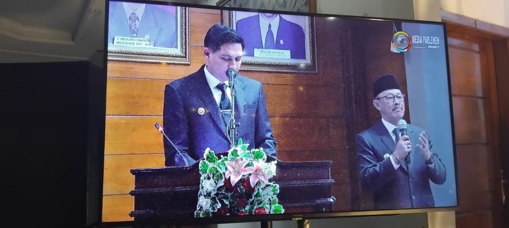 Bupati Lucky menggelar jumpa pers usai Sertijab di Gedung DPRD Indramayu, Senin, 3 Maret 2025