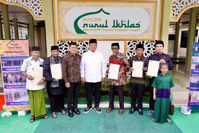 Selain menggelar rapat bersama jajaran Kanwil dan seluruh Kepala Kantah se-Sulteng, Menteri Nusron yang didampingi Kepala Biro Humas, Harison Mocodompis, turut menyerahkan sertipikat tanah wakaf bagi lima rumah ibadah di Kota Palu dan Kabupaten Sigi. Ia juga menandatangani prasasti Masjid Nurul Ikhlas Kanwil BPN Provinsi Sulteng sebagai bentuk dukungan terhadap fasilitas keagamaan. (Tim)